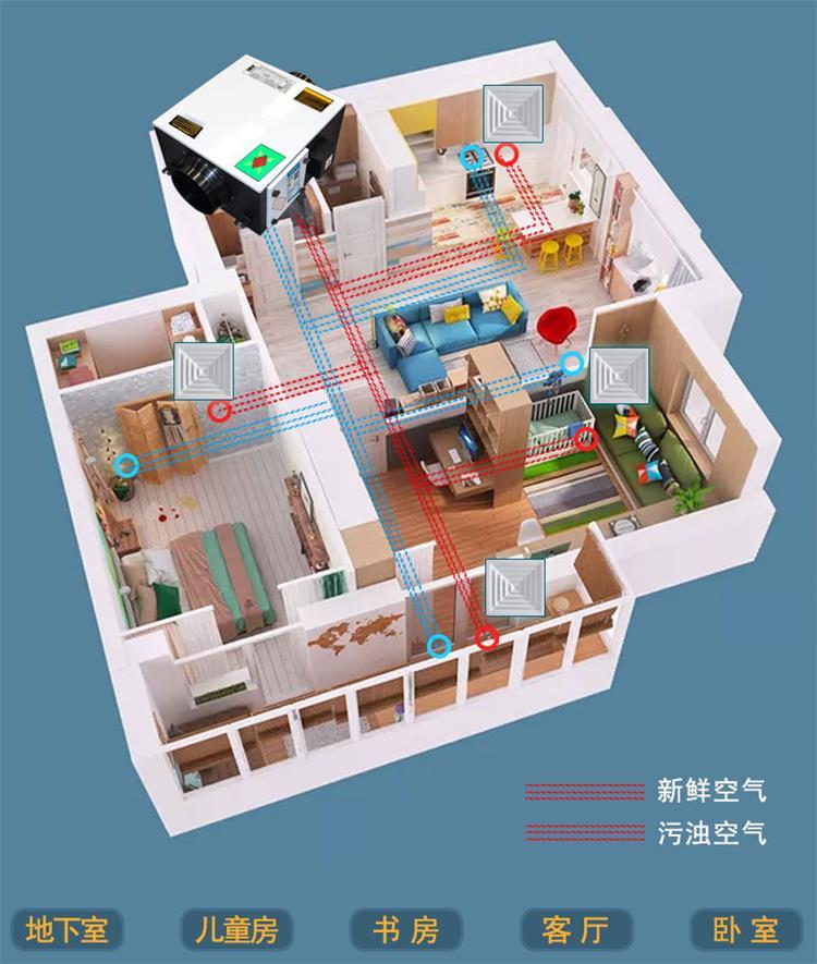 單向流新風(fēng)系統(tǒng)在運(yùn)行時,室內(nèi)廢氣有組織的不斷排至室外,這時就會產(chǎn)生氣壓不平衡,使室內(nèi)產(chǎn)生負(fù)壓,新鮮空氣通過進(jìn)風(fēng)口進(jìn)行過濾、除濕、除味、降噪后,二十四小時源源不斷的補(bǔ)充進(jìn)來。在單向流住宅新風(fēng)系統(tǒng)中,次臥室利用走廊和次臥室門下裝修縫作為新風(fēng)走道,不需要額外的投資。