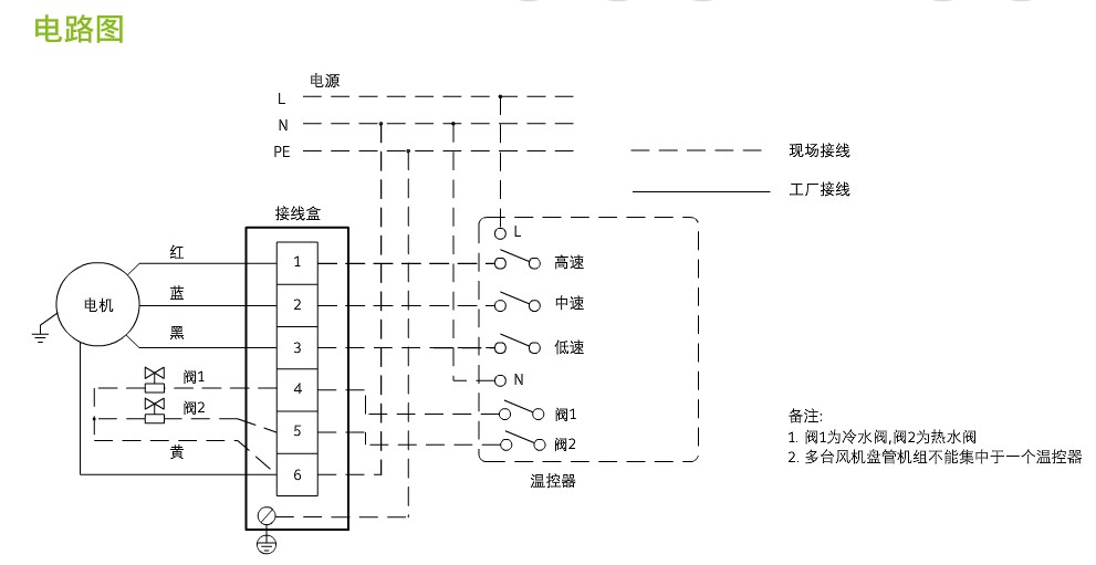 風(fēng)機(jī)盤管簡單控制:使用三速開關(guān)直接手動控制風(fēng)機(jī)的三速轉(zhuǎn)換與啟停。