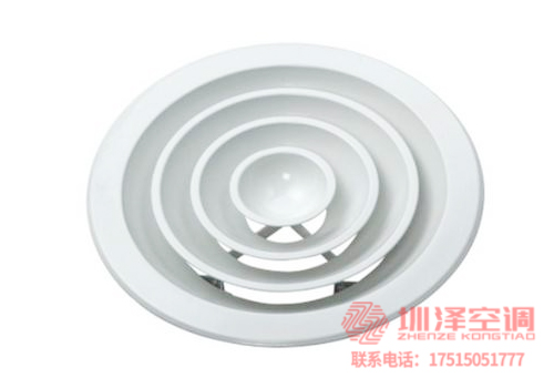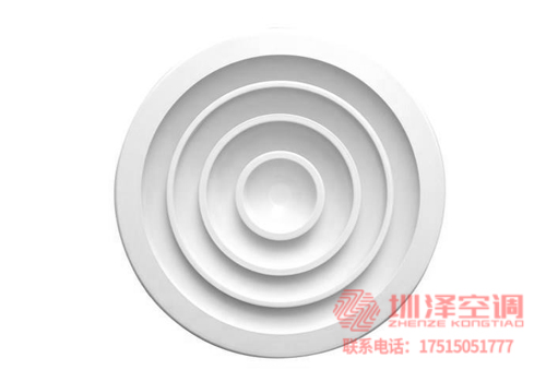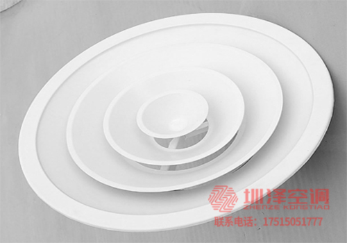 1、圓形散流器是多層錐形結(jié)構(gòu),通常安裝在寒冷和溫暖房間的天花板上。其送風(fēng)氣流為附著式,具有內(nèi)感好、送風(fēng)溫差大、送風(fēng)氣流均勻、抑制體感氣流等特點(diǎn)。