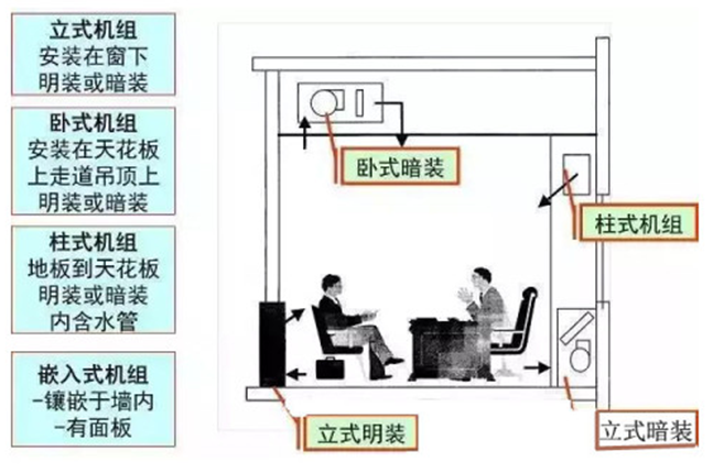 3。各種類型風(fēng)機(jī)盤管裝置的安裝位置