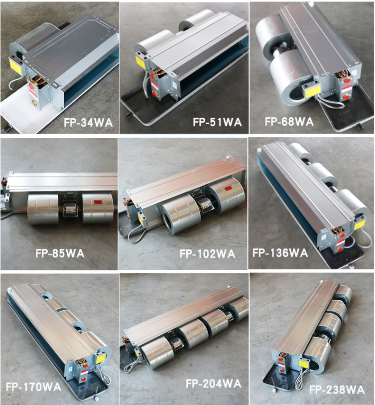 2.風(fēng)機盤管機組供氣量約為250 ~ 2500米/小時,出口靜壓小于100帕(出口靜壓大于30帕為高靜壓型)。